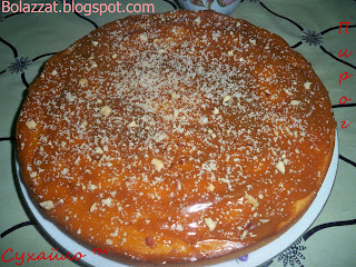 3.Аз тафдон бароварда мегузорем,каме хунук шавад баъдан ба болои пирог ширқиёми пухташуда мемолем ва чормағз мепошем.